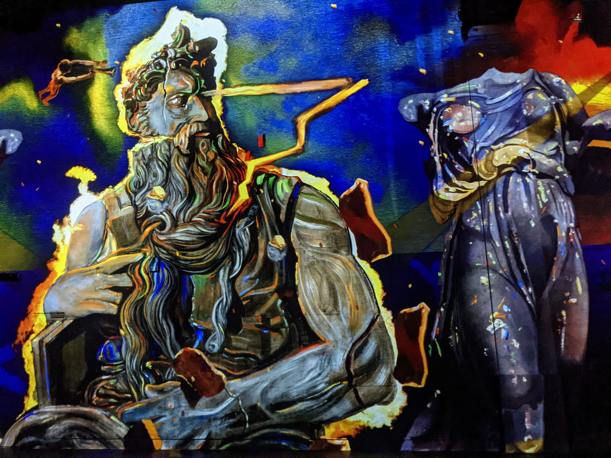 A la dernière séquence, le visiteur découvre les œuvres stéréoscopiques créées par Dalí d'après L'école d'Athènes et L'incendie du Borgo de Raphaël.