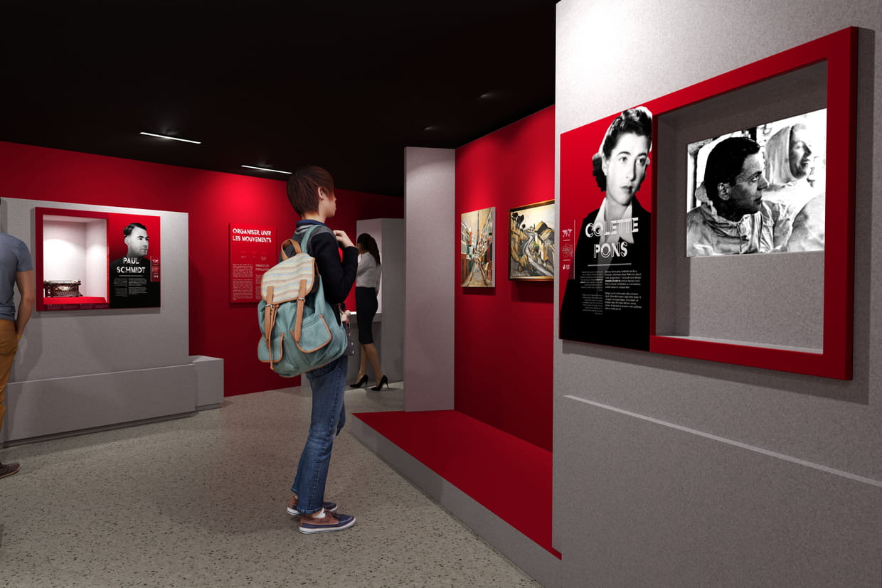 La luminosité des salles suit cinq teintes chromatiques, de la salle de l'Exode à la lumière zénithale marquant la défaite de juin 1940, à la lumière de la Libération en passant par l'ombre de la France occupée et la pénombre de la Résistance.