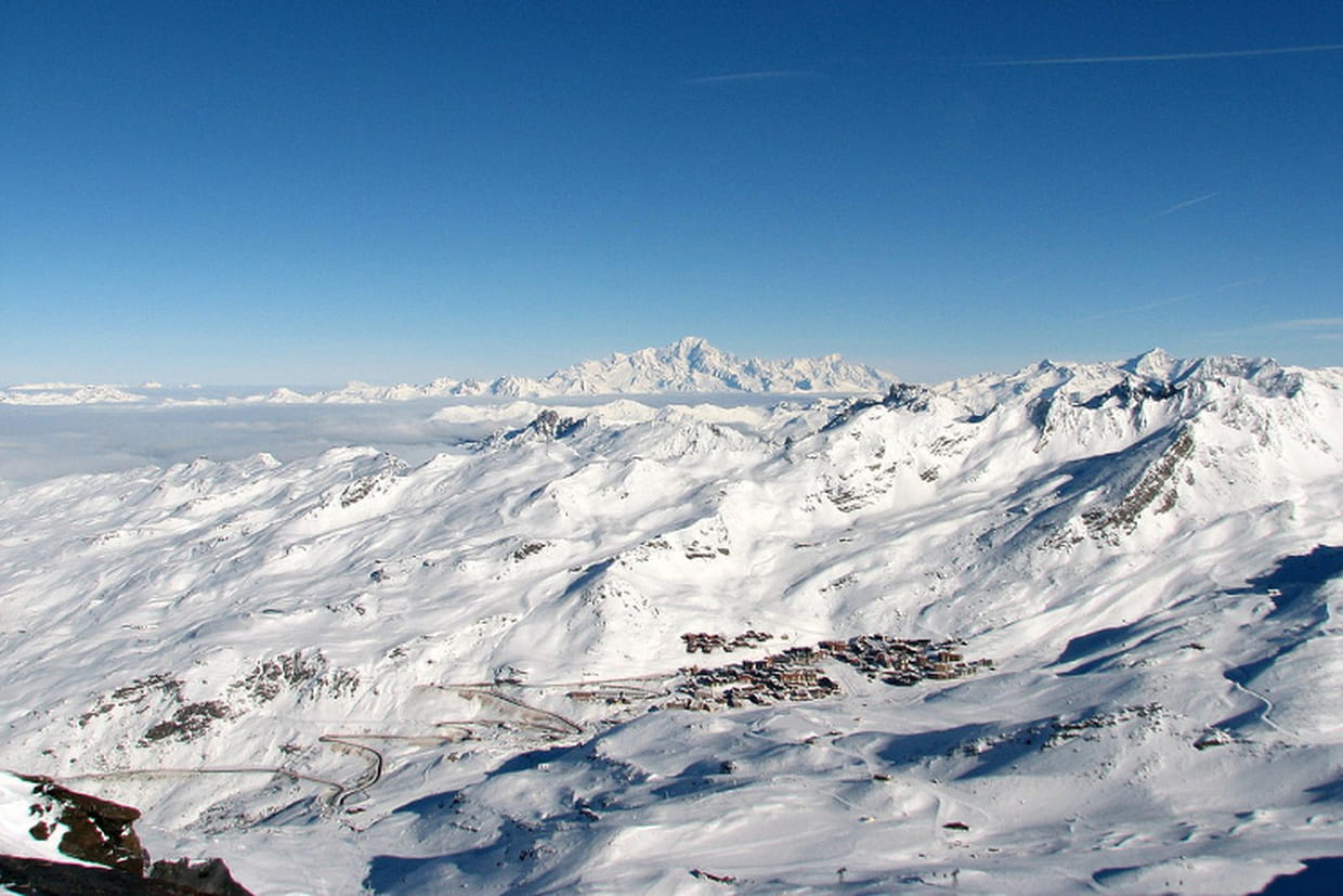 Dans le massif de la Vanoise, la Cime de Caron haute de 3 195 m d'altitude accessible depuis Les Ménuires et de Val Thorens au sommet duquel se dégage une vue imprenable sur le Mont Blanc.