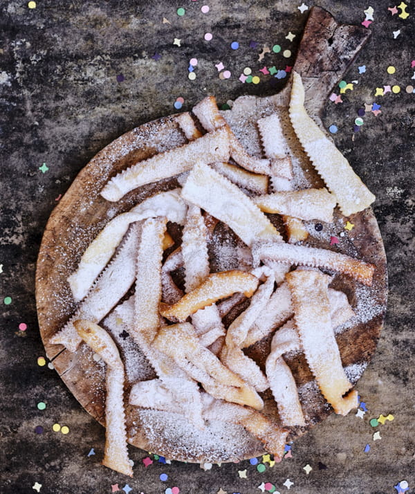 On les appelle les "Chiacchiere di carnevale" chez nos amis transalpins. Parmi les pâtisseries de tradition italienne, ces délicieux beignets ont leur place de choix durant les festivités du Mardi Gras, ultime journée des célébrations de la période de Carnaval, avant la saison de jeûne du Carême pour les Chrétiens. Ces beignets originaux prennent la forme d'une bande de pâte très fine aux bords en zigzag, aromatisée, frite puis saupoudrée de sucre glace. Leur texture légère les rend idéaux pour être consommés dans la rue !
