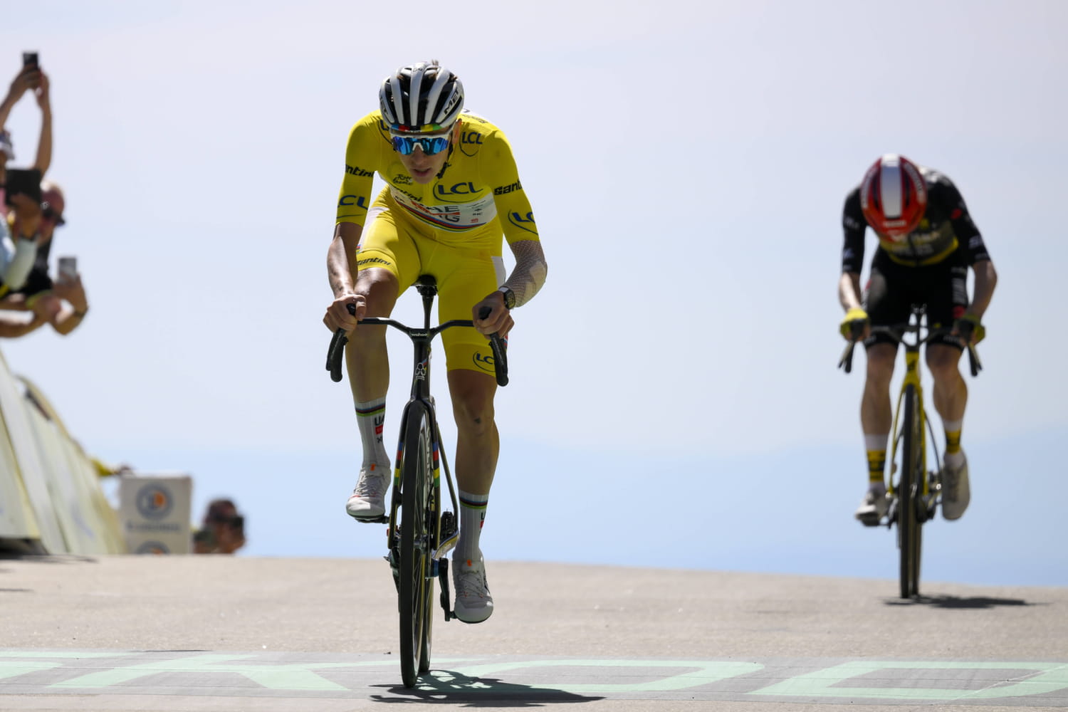"Je ne voulais pas me faire mal aux jambes". Une réflexion de Tadej Pogacar qui en a surpris plus d'un après que le maillot jaune a battu le record de la montée la plus rapide du terrible mont Ventoux, pour cette 16e étape du Tour de France, mardi 22 juillet. Il a établi le record à 54 minutes et 41 secondes, battant celui d'Iban Mayo, en 2004, de 55 minutes et 51 secondes.