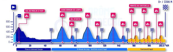 Le parcours des Championnats d'Europe entre Privas et Valence (202,5 km et 3 306 m de dénivelé positif) devrait favoriser les puncheurs.