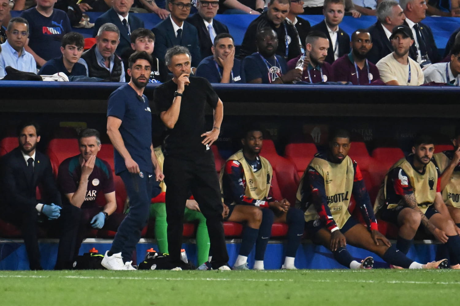 Si cette victoire en Ligue des champions du PSG a été emprunt d'une joie évidemment immense, elle a aussi déclenché certaines douleurs remontées à la surface. D'abord concernant Luis Enrique, vêtu d'un tee-shirt en hommage à sa fille Xana emportée par un cancer osseux à l'âge de neuf ans en 2019. Le coach espagnol, déjà sacré en Allemagne en 2015 avec le FC Barcelone avait alors posé avec elle, portant un drapeau du club, à l'issue de la finale. Dix ans plus tard, Luis Enrique de nouveau titré, cette fois sous les couleurs parisiennes, a vu le superbe tifo déployé par les supporters parisien en hommage à Xana. Une initiative qui a fortement touché le coach du club.