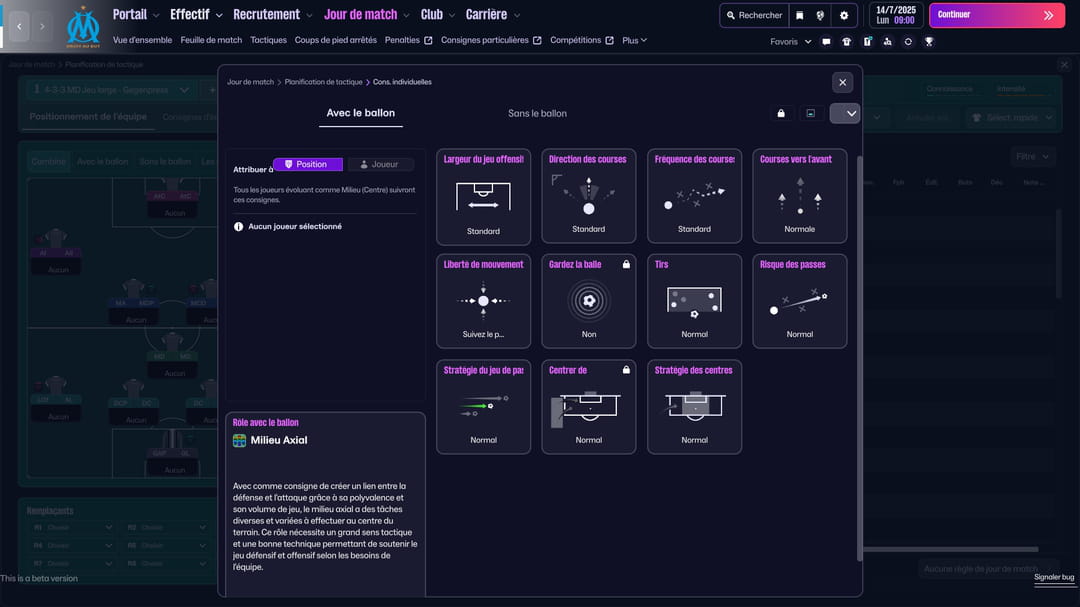 La gestion tactique a évolué avec deux aspects, le jeu avec et sans ballon qui donne un peu plus de complexité sur les rôles de vos joueurs. Personnellement j'ai trouvé que certaines consignes comme jouer sur un pivot pour permettre plus de buts de la tête n'est jamais vraiment prise en compte. Alors on a pas tous Olivier Giroud dans son équipe, mais la prise en main est quand même complexe si on est pas un joueur assidu. Au fur et à mesure de la partie et si vous faites le bon travail, des liens entre les joueurs apparaitront, le début de la gloire !