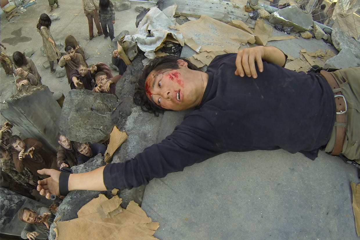 Lors de l'attaque de la prison par les forces de Woodbury dans The Walking Dead, les différents survivants du groupe se perdent de vue et sont éparpillés aux quatre vents. Glenn, lui, se retrouve seul dans la prison désormais envahie de zombies. Grâce à sa sagacité, il réussit à s'en sortir en se couvrant notamment d'une armure anti-émeutes. Glenn a toujours plus d'un tour dans son sac !