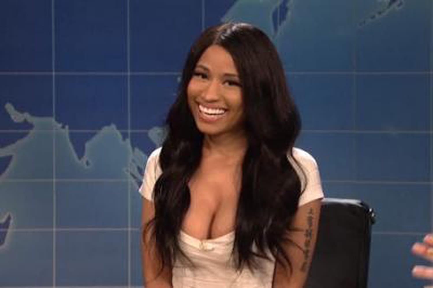 Il y a quelques jours, les téléspectateurs du Saturday Night Live ont vu débarquer Nicki Minaj sur le plateau. En plus de chanter quelques chansons de son dernier album, cette dernière en a profité pour proposer une imitation très drôle de Kim Kardashian, la femme de Kanye West. Dans le sketch ci-dessous, Nicki Minaj explique au présentateur Colin Jost que la fameuse couverture du magazine Paper a été prise hors contexte. Elle blague sur le fait que les photographes ont oublié de mettre un fond sur le cliché final. "Cette couverture a été totalement mal interprétée par les gens. Voilà le cliché avec le fond qui était prévu à la base". On découvre alors un montage de Nicki Minaj dans la peau de Kim Kardashian.