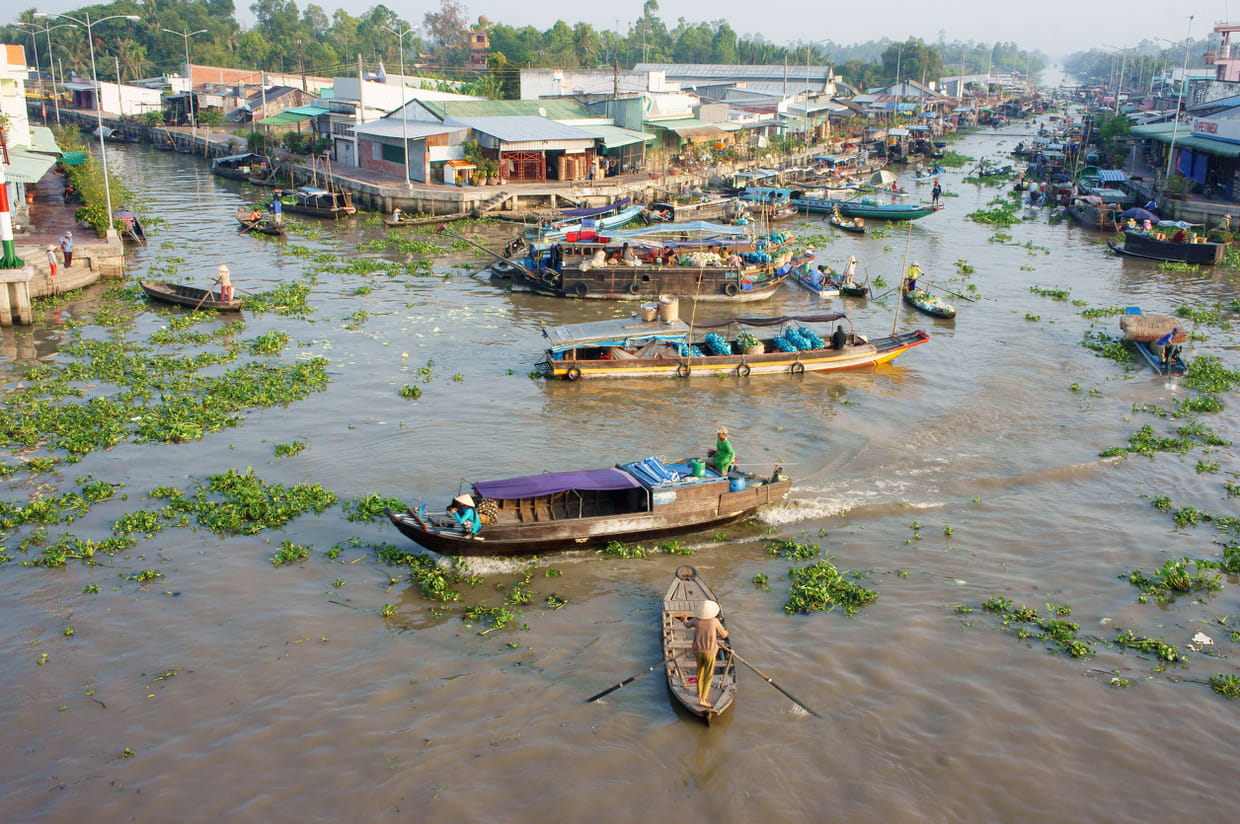 Une croisière sur le Mékong, 10e plus grand fleuve du monde, est un moment magique. Au Vietnam, les eaux du fleuve se dispersent dans un delta monumental irriguant plus de 800 000 km² de terres, chargé en alluvions fertiles et en légendes invoquant dragons magiques et poissons géants...