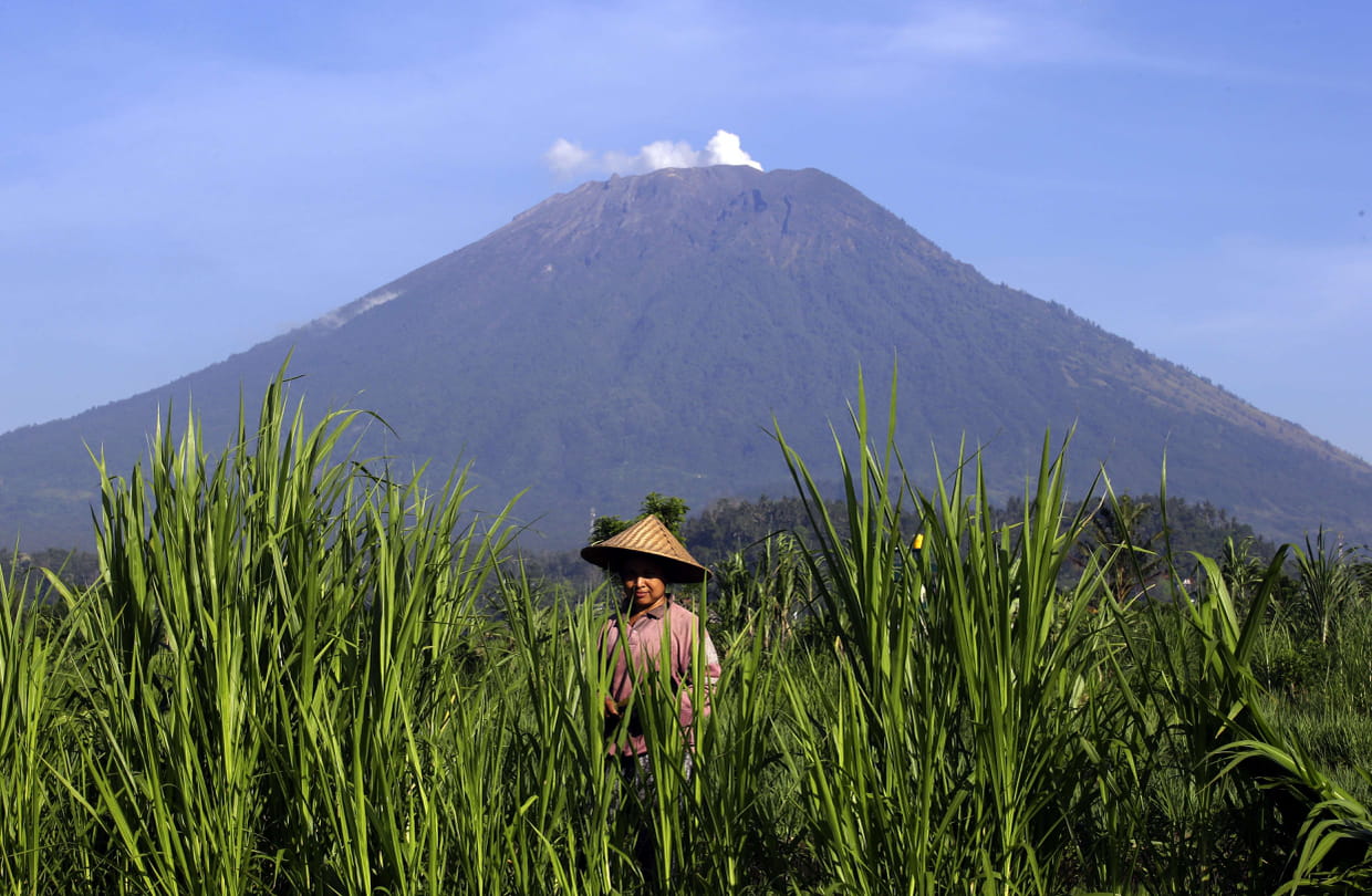 Situés à seulement quelques kilomètres du volcan, les champs et rizières des paysans pourraient être totalement détruits par l'éruption du mont Agung.