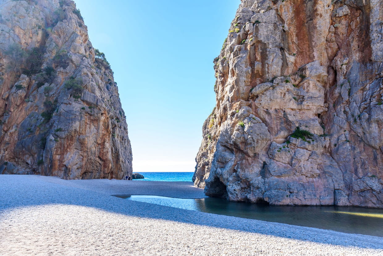 Si la plage de Sa Calobra au nord de l'île de Majorque n'a rien d'exceptionnel, vous pouvez poursuivre votre balade dans le canyon du Torrent de Pareis afin de contempler ces gorges gigantesques. Pour les plus avertis, des sentiers balisés permettent de faire une randonné d'environ sept kilomètres entre les falaises.