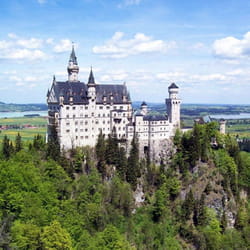 La construction de ce château féerique fut initiée par le roi Louis II de Bavière. Il souhaitait, avec cette réalisation, évoquer l'univers d'un artiste qu'il affectionnait particulièrement : Richard Wagner. Le château de Neuschwanstein, dressé au sommet d'un éperon rocheux haut de 200 mètres, est donc un pur produit de l'imagination du roi Louis II. Il aurait notamment inspiré Walt Disney pour la création du château de la Belle au Bois Dormant.