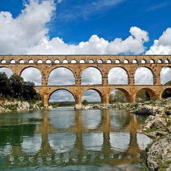 Dans la commune de Vers-Pont-du-Gard en France, le pont du Gard est la partie monumentale d'un aqueduc romain à 3 niveaux probablement construit au Ier siècle de notre ère.
