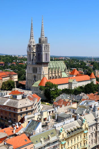Vue aérienne sur le centre et la cathédrale de Zagreb, en Croatie. © Jelena Katavic - 123RF