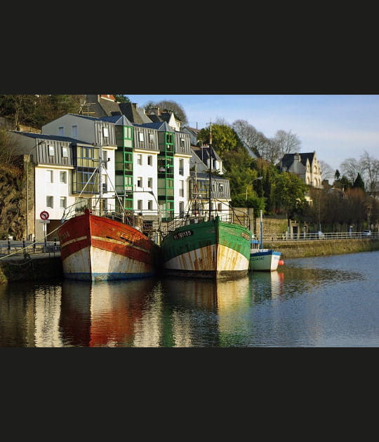 Reflets dans la rivière, un soir de février à Morlaix, ville française située dans le département du Finistère en Bretagne.