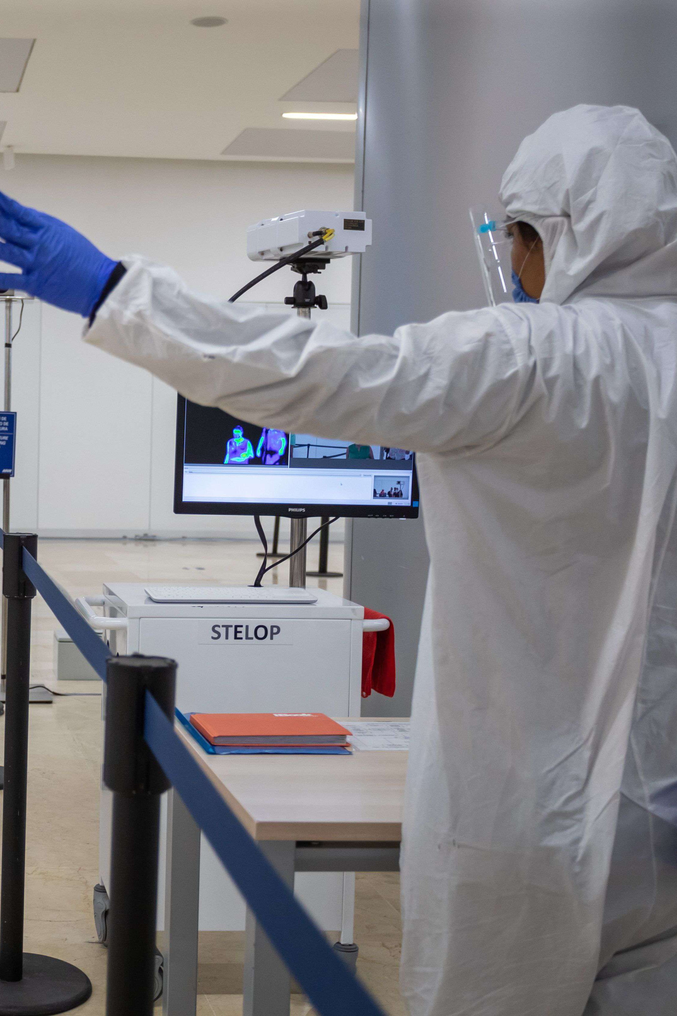 Prise de température automatique à l'arrivée sur le sol français. © Rodolfo Flores/Eyepix Group/Paci