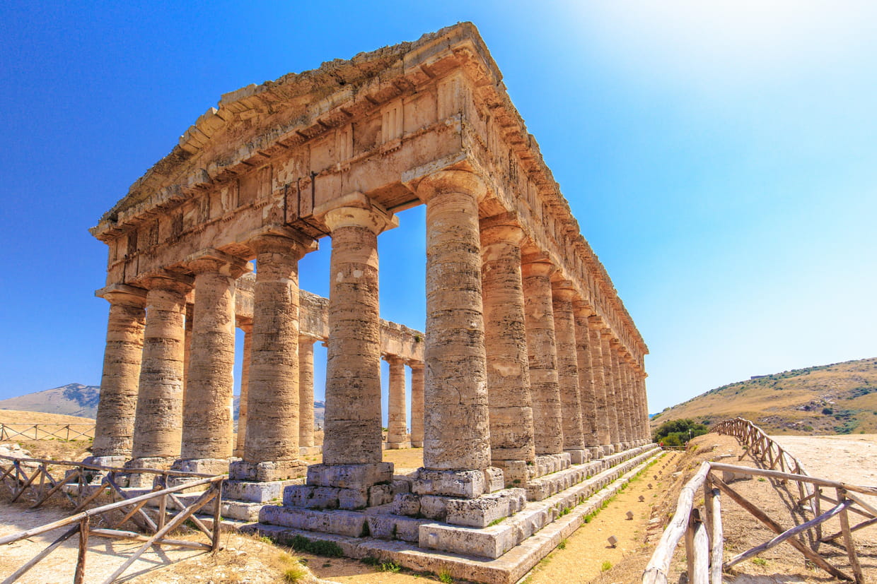 À 1h de route de Palerme, l'extraordinaire site archéologique de Ségeste est l'un des symboles de la Sicile. De cette ancienne cité élyme, il ne reste qu'un temple dorique et un théâtre grec de 63 m de diamètre, perdus dans un paysage de douces collines descendant vers le golfe de Castellamare. Ensemble, ils forment l'un des paysages les plus évocateurs de la Méditerranée antique.